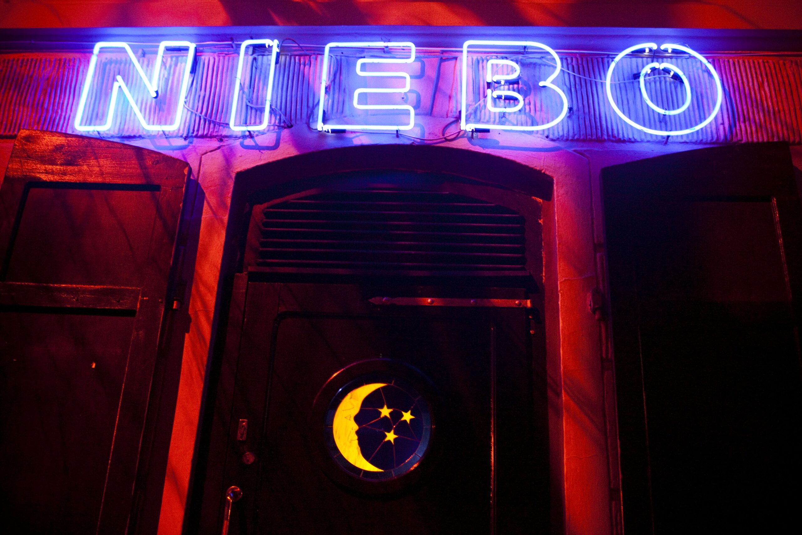 Pub Niebo mieści się w śródmieściu Katowic, przy ul. Raciborskiej 11.